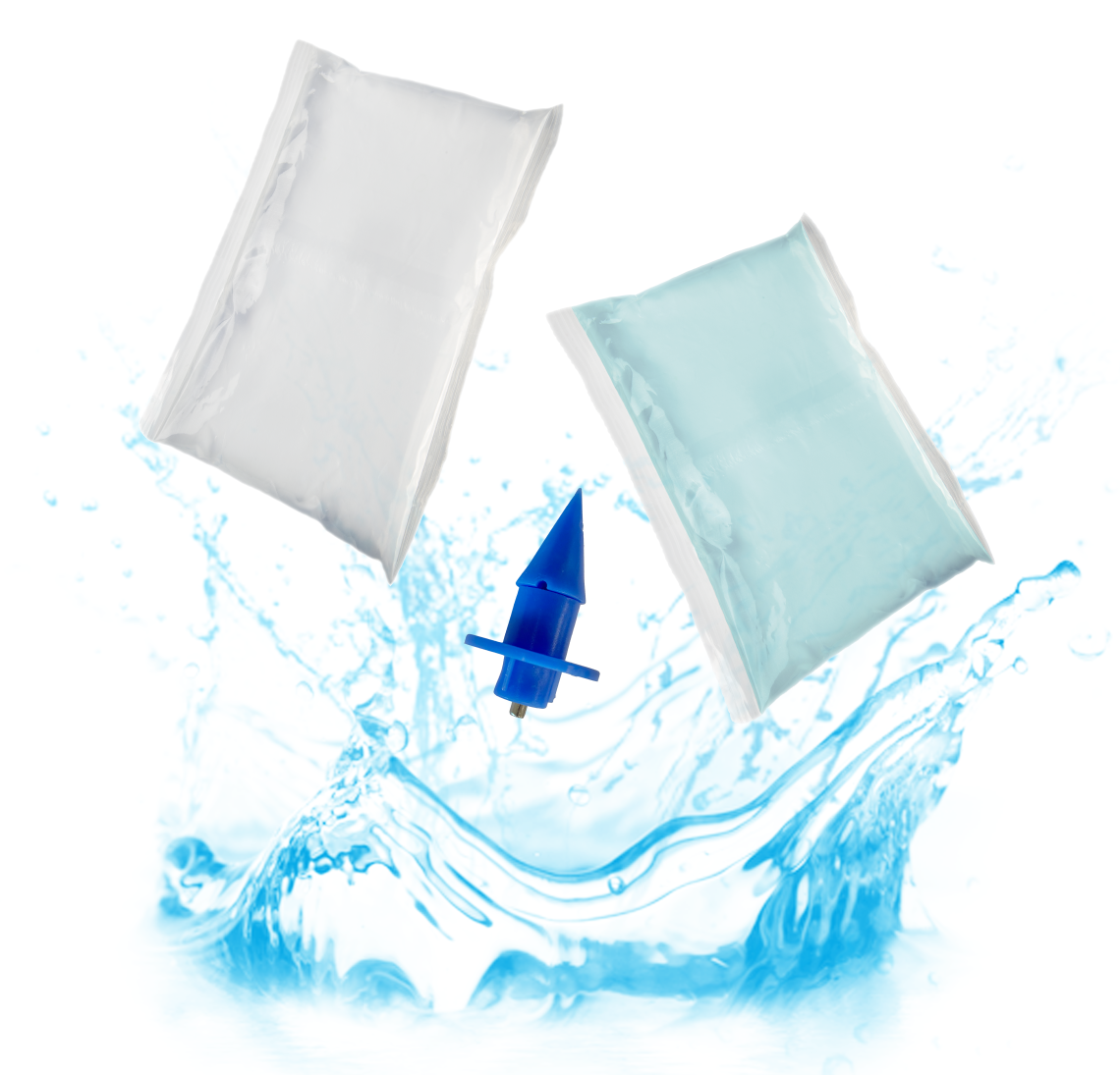 Pre-filled, pure water in a ready-to-use pouch